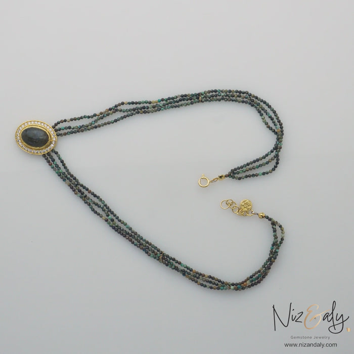 Turquoise Mirage -Labradorite Pendant and Micro-Beaded African Turquoise Strands