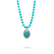 The Composite Turquoise Necklace is a stunning statement piece that blends artistry with natural beauty. Featuring vibrant composite turquoise stones, this necklace showcases a mesmerizing mix of blue and green hues with intricate veining, reminiscent of the ocean and sky. Turquoise is known for its protective and healing properties, symbolizing wisdom, serenity, and positive energy. The unique composite design enhances the stone’s natural beauty, making each piece truly one-of-a-kind. Perfect for adding a bold yet elegant touch to any outfit, this necklace is a must-have for those who appreciate distinctive and meaningful jewelry.