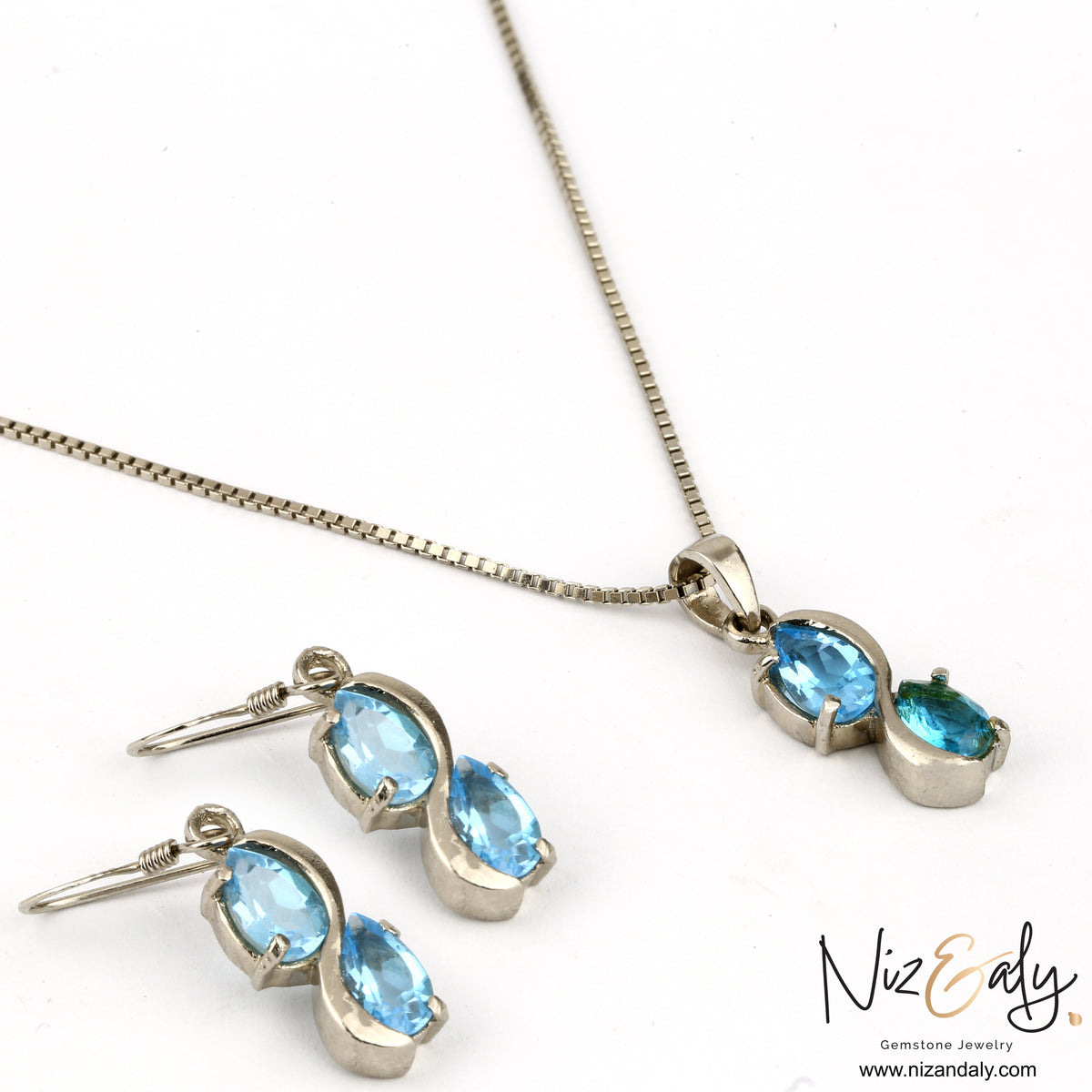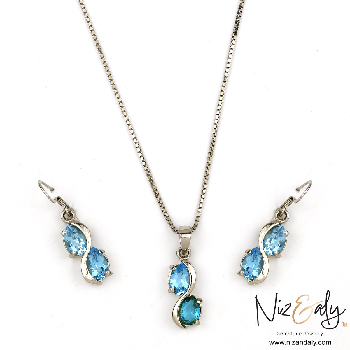 The Sea Blue Double Topaz Drop Pendant Set is a refreshing and sophisticated piece that evokes the tranquility of the ocean. Featuring two stunning sea blue topaz gemstones, this pendant set captures the light with its crystal-clear, vibrant blue hues, symbolizing clarity, peace, and calm. The double drop design adds depth and elegance, while the clean, refined setting enhances the gemstones' natural beauty. Perfect for adding a touch of sparkle and elegance to any outfit, this set is ideal for both special occasions and everyday wear. A must-have for those who appreciate timeless beauty with a serene, ocean-inspired charm.